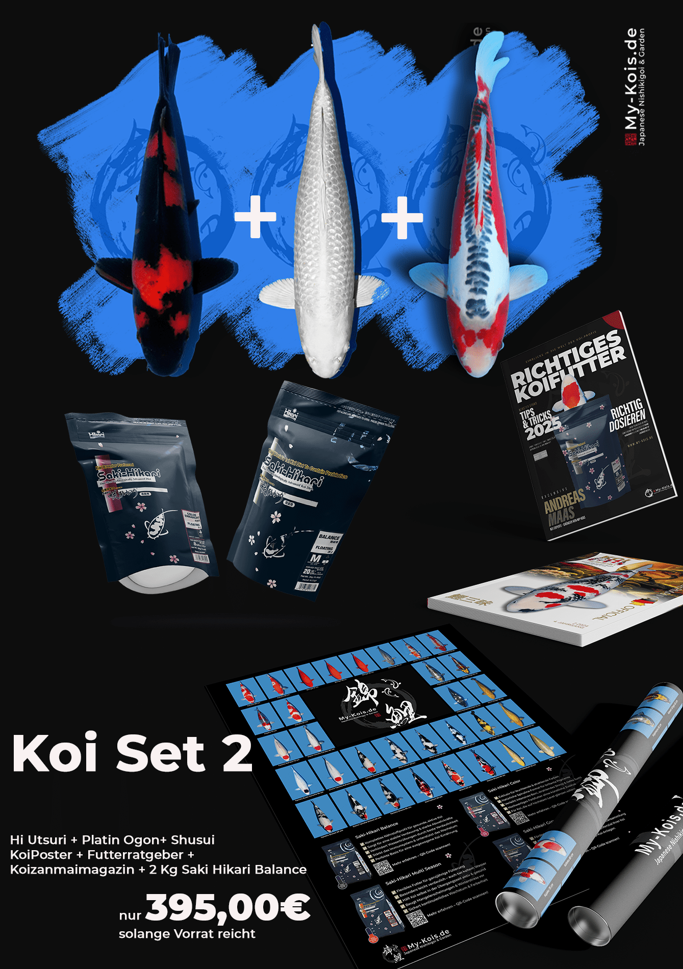 Tauche ein in die Welt der japanischen Spitzen-Koi! Unser Koi Set 2 bietet eine edle Selektion aus drei harmonisch abgestimmten Varietäten.