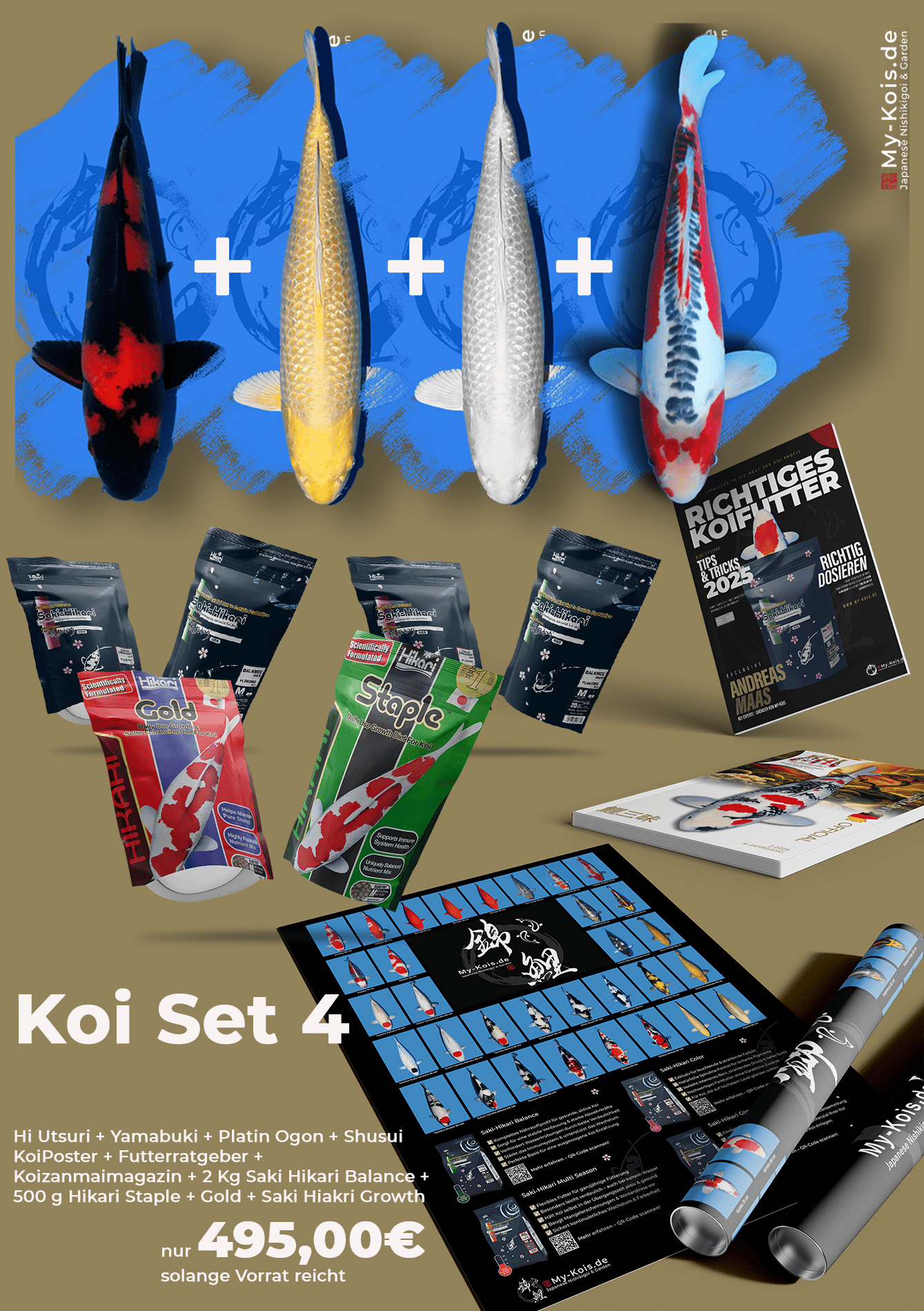 Perfekt abgestimmtes Set mit 4 Koi & umfangreichem Zubehör!